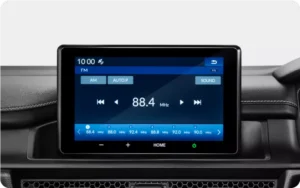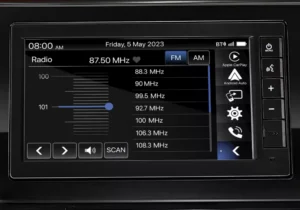 Fitur Hiburan & komunikasi termasuk Soket USB, Sambungan Bluetooth, Pemutar CD, Pemutar DVD, Radio AM/FM, Speaker depan, Speaker belakang, Lingkar kemudi Dengan Tombol Multi Fungsi dan Layar Sentuh.