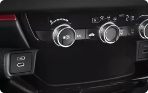 Fitur pendukung Kenyamanan & Kemudahan termasuk AC, Pemanas, Engine Start Stop Button, Cup Holder – depan, Keyless Entry, Power Window Depan, Lampu baca dan Vanity Mirror.