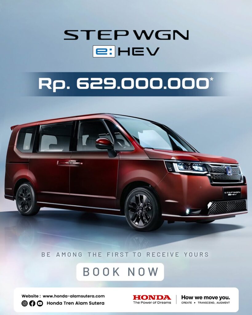 Eksterior Honda StepWGN tampil dengan desain modern dan tegas yang mencerminkan karakter elegan sekaligus fungsional. Garis bodinya yang bersih dan proporsional memberikan kesan dinamis, sementara dimensi yang kokoh menegaskan identitasnya sebagai MPV keluarga premium.